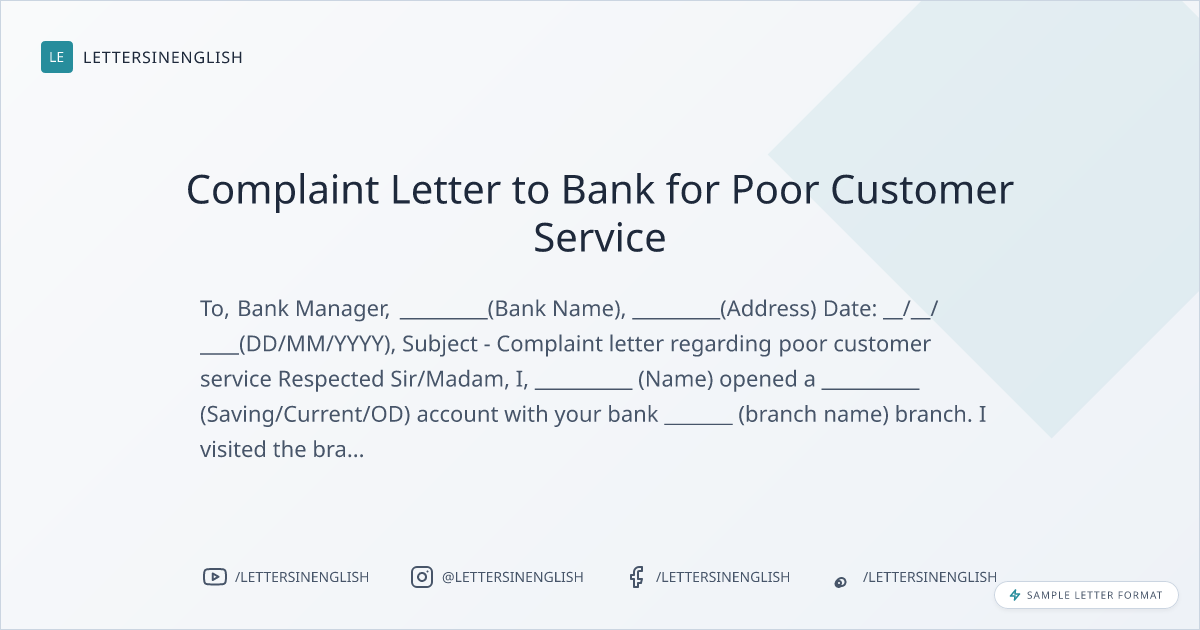 Sample Complaint Letter to Bank Regarding Poor Customer Service