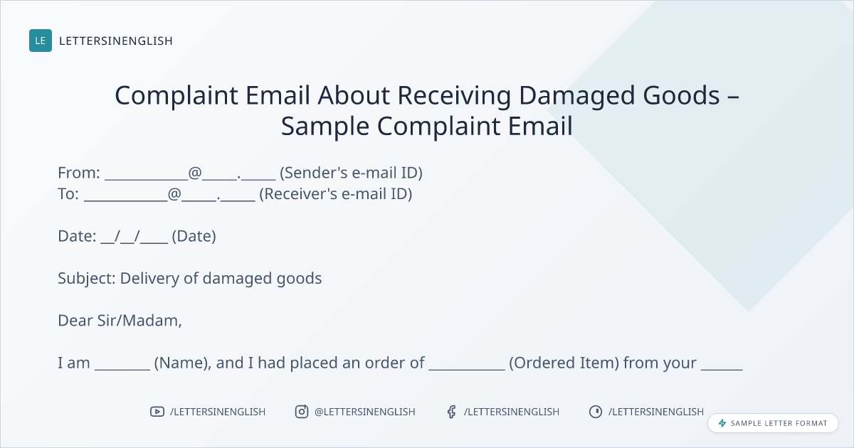 Complaint Email About Receiving Damaged Goods – Sample Complaint Email