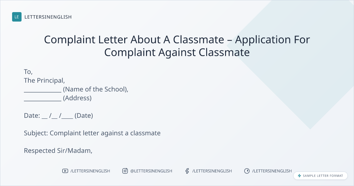 Complaint Letter About A Classmate – Application For Complaint Against Classmate