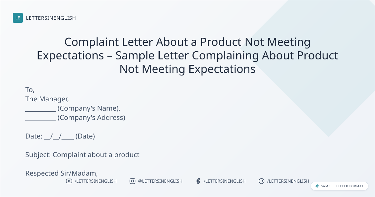 Complaint Letter About a Product Not Meeting Expectations – Sample Letter Complaining About Product Not Meeting Expectations