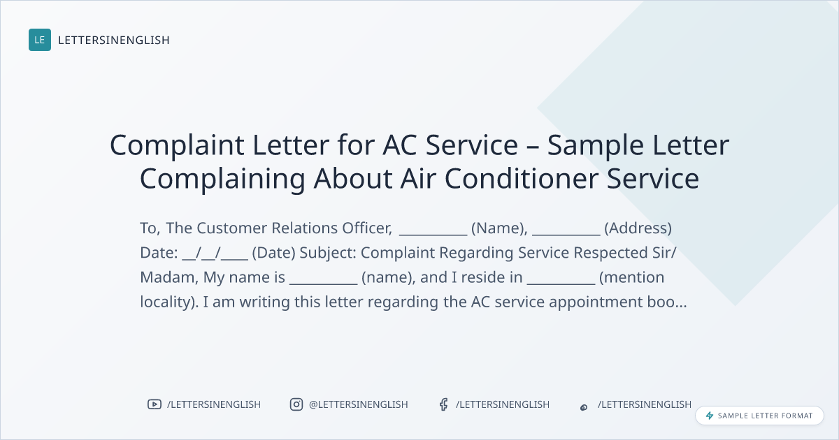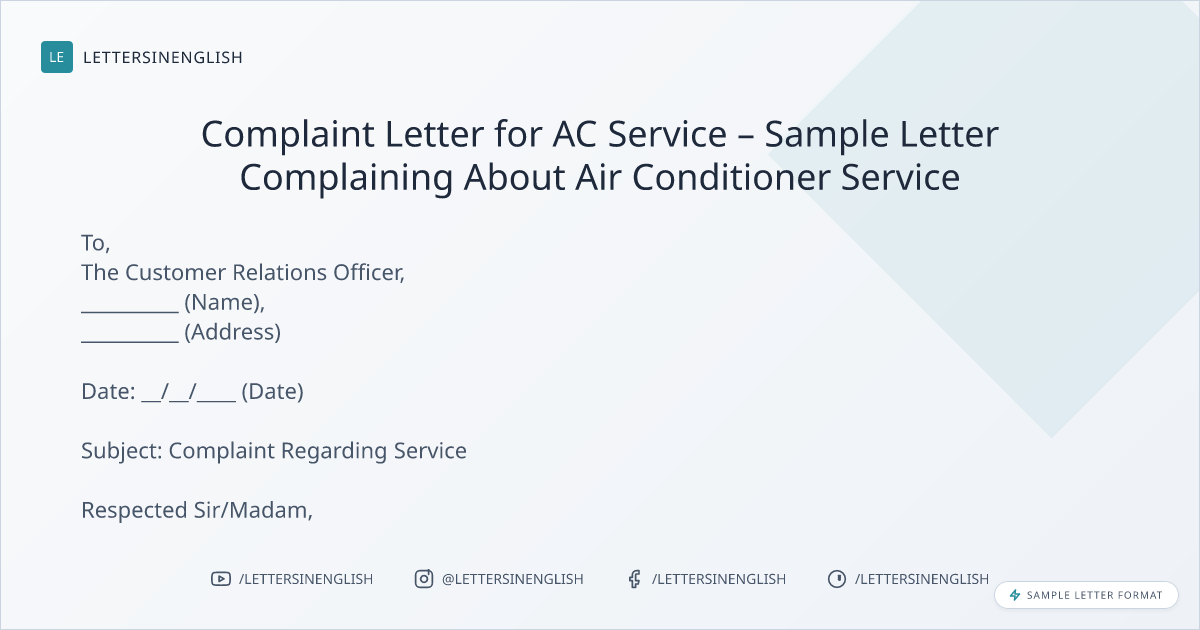 Complaint Letter for AC Service – Sample Letter Complaining About Air Conditioner Service