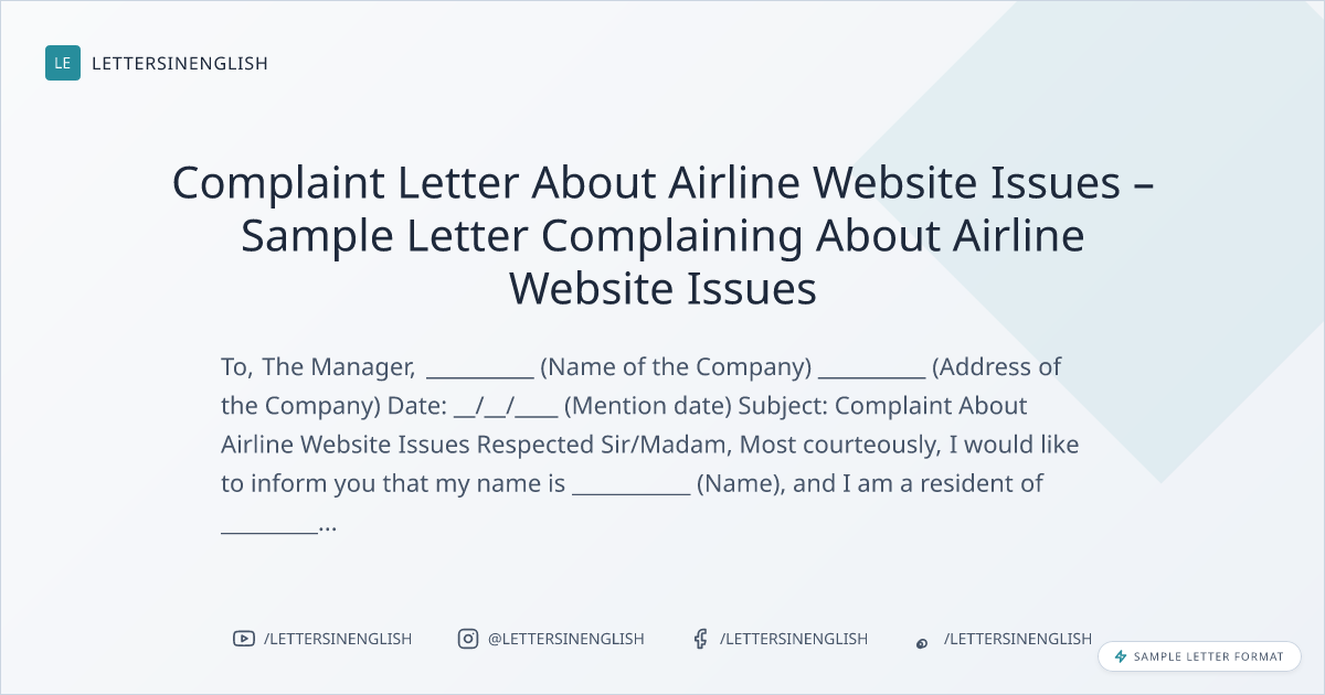 Complaint Letter About Airline Website Issues – Sample Letter Complaining About Airline Website Issues