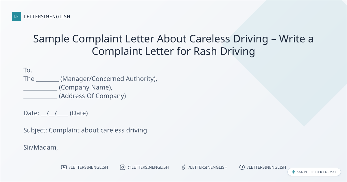 Sample Complaint Letter About Careless Driving – Write a Complaint Letter for Rash Driving