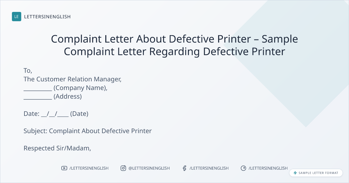 Sample Complaint Letter Regarding Defective Printer