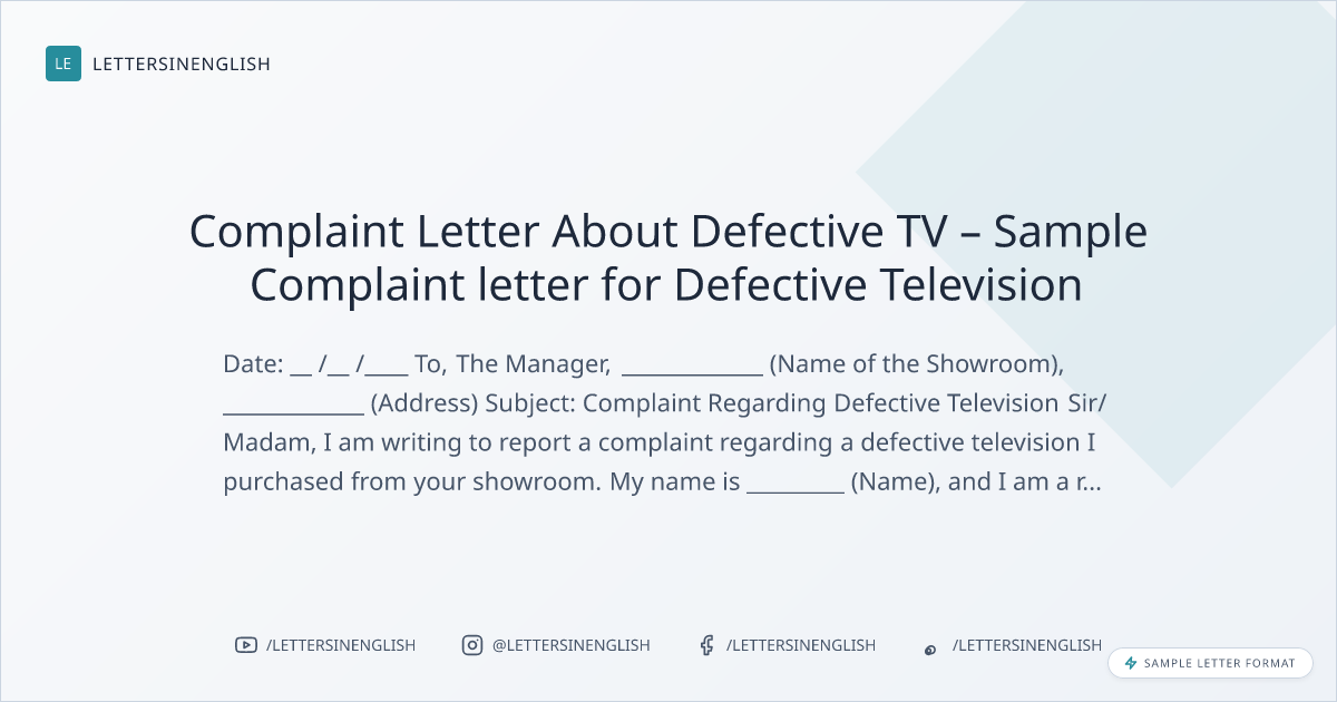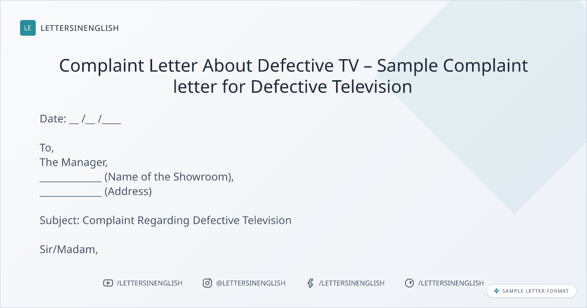 Complaint Letter About Defective TV – Sample Complaint letter for Defective Television