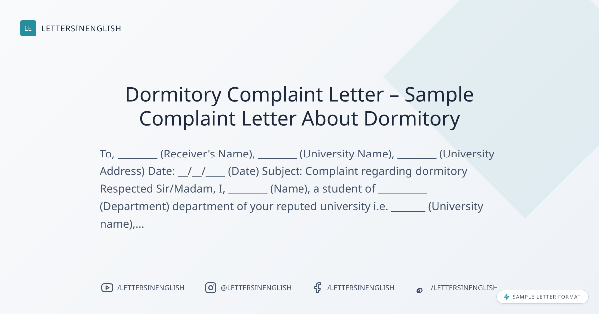 Dormitory Complaint Letter – Sample Complaint Letter About Dormitory