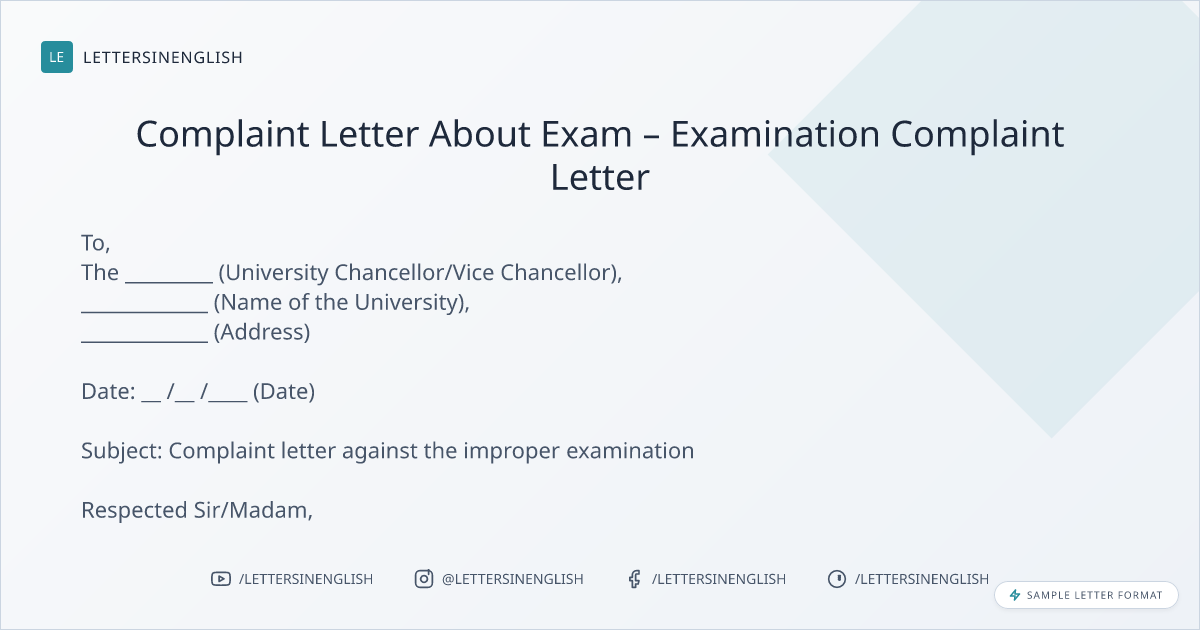 Complaint Letter About Exam – Examination Complaint Letter