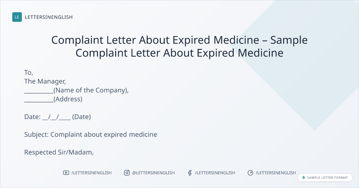 Complaint Letter About Expired Medicine – Sample Complaint Letter About Expired Medicine