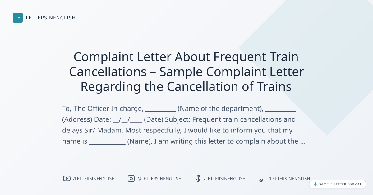Complaint Letter About Frequent Train Cancellations – Sample Complaint Letter Regarding the Cancellation of Trains