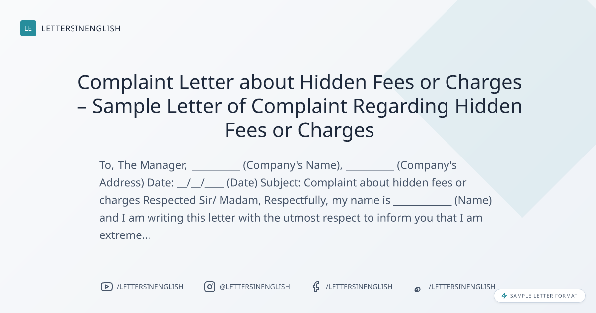 Complaint Letter about Hidden Fees or Charges – Sample Letter of Complaint Regarding Hidden Fees or Charges