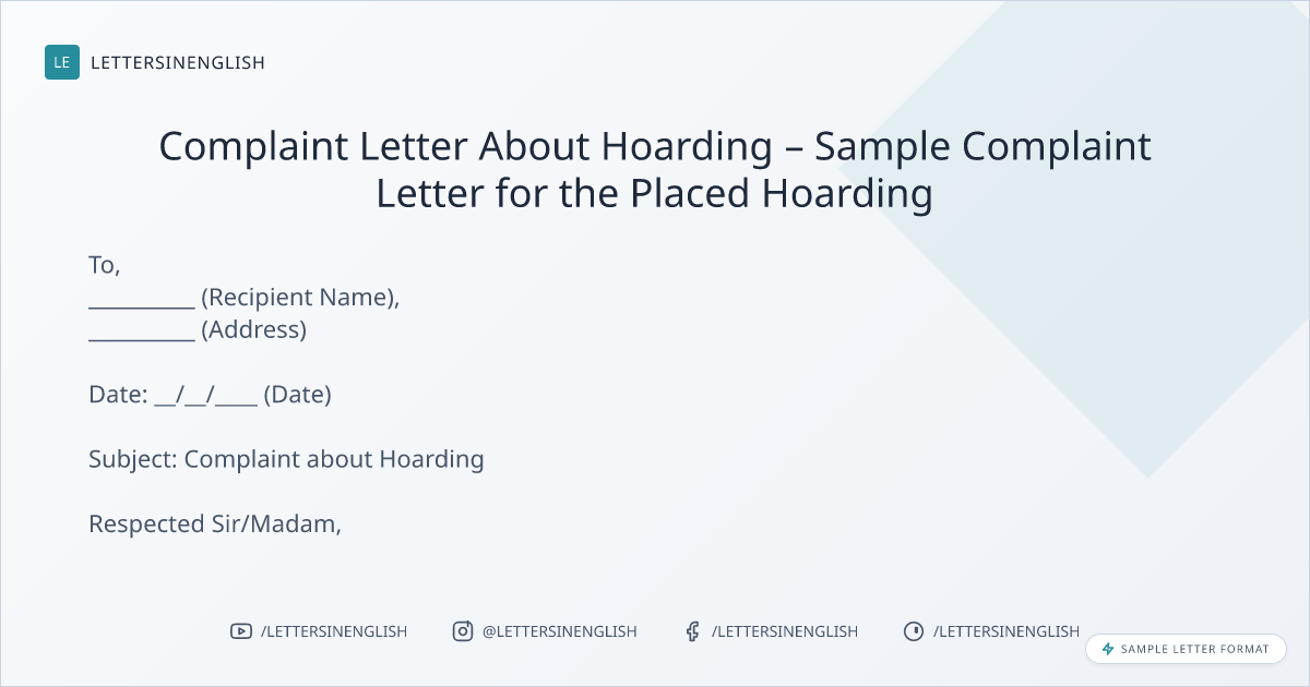 Sample Complaint Letter for the Placed Hoarding