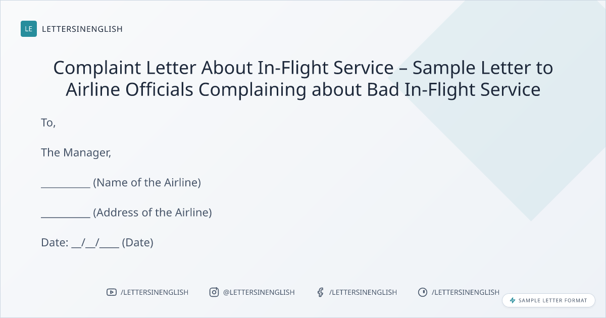 Complaint Letter About In-Flight Service – Sample Letter to Airline Officials Complaining about Bad In-Flight Service