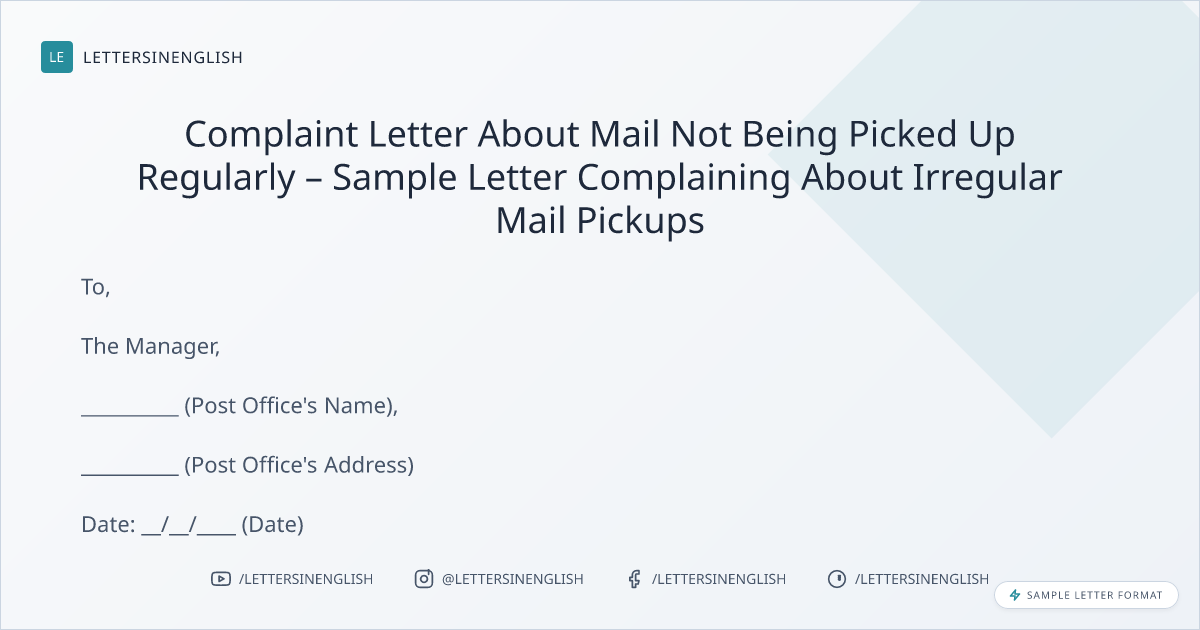 - Complaint Letter Sample for Mail Not Being Picked Up Regularly