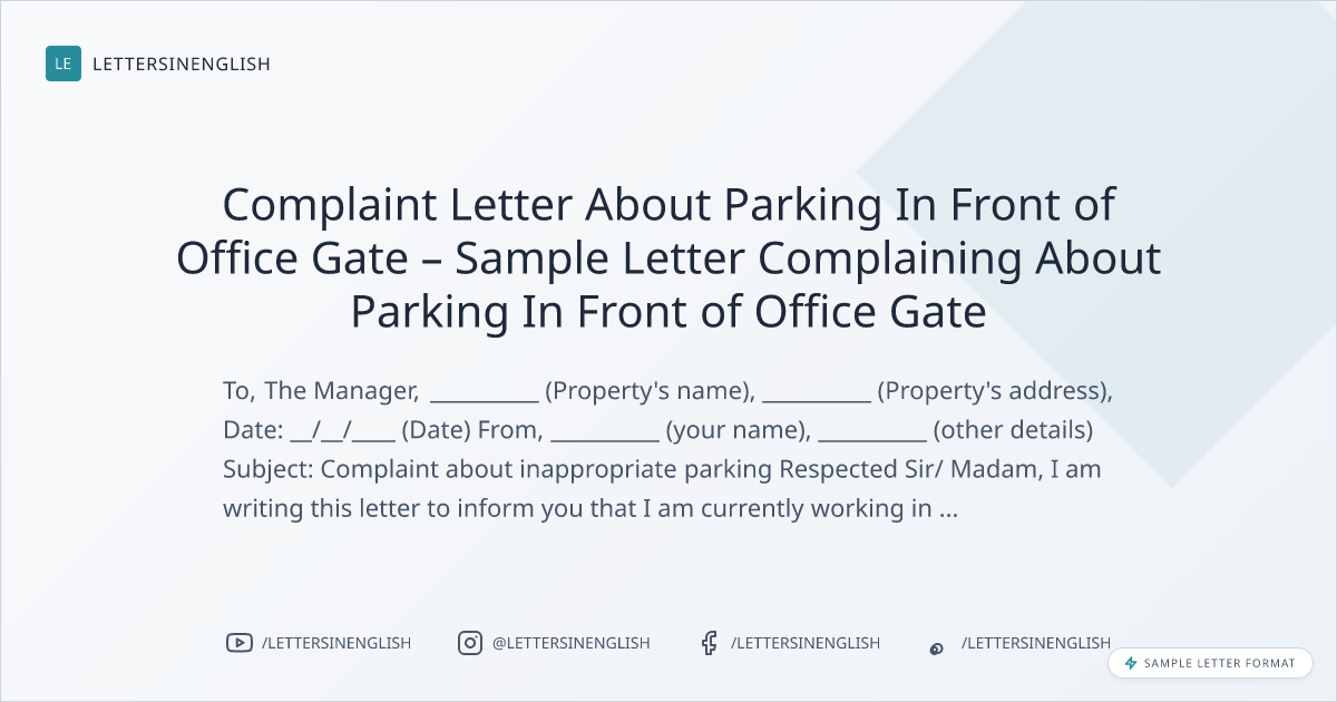 Complaint Letter About Parking In Front of Office Gate – Sample Letter Complaining About Parking In Front of Office Gate