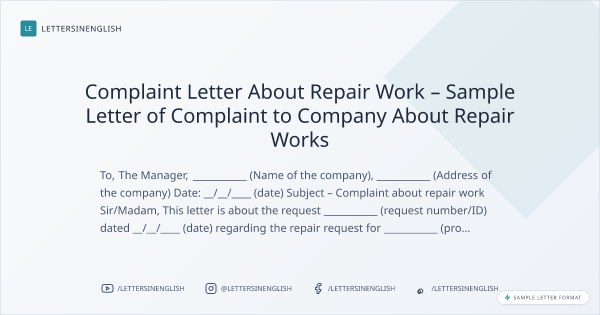Complaint Letter About Repair Work – Sample Letter of Complaint to Company About Repair Works