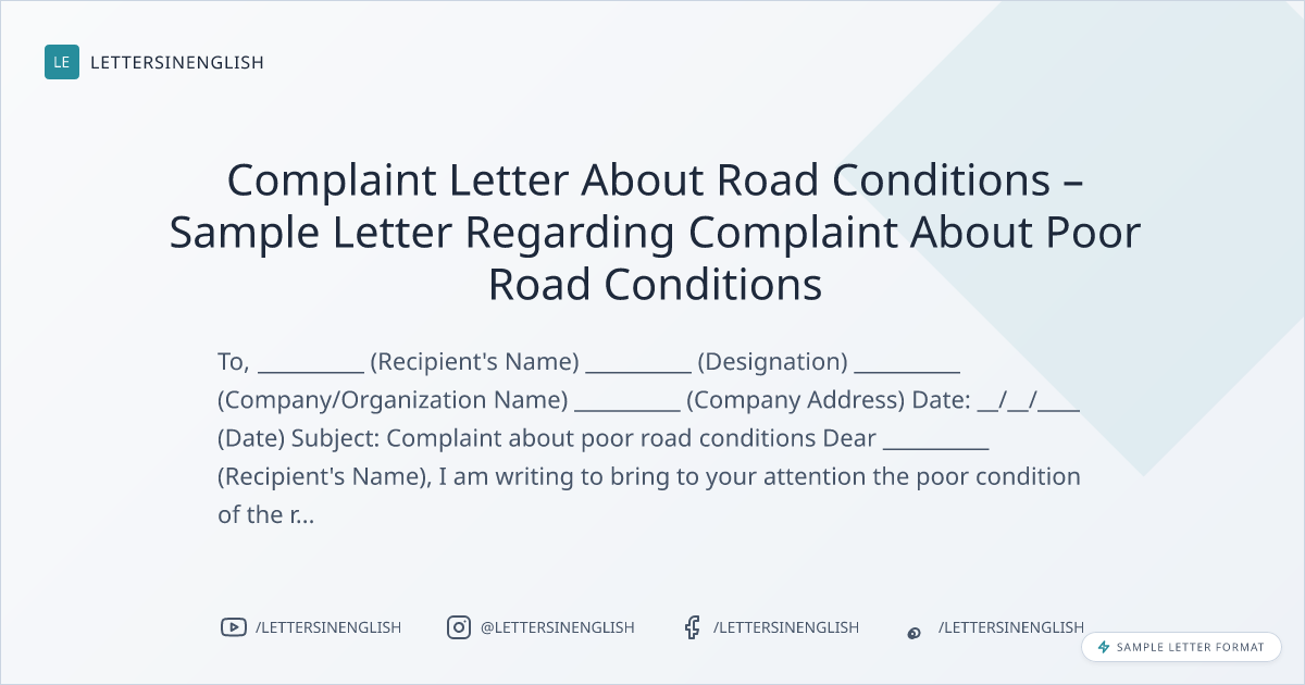 Complaint Letter About Road Conditions – Sample Letter Regarding Complaint About Poor Road Conditions