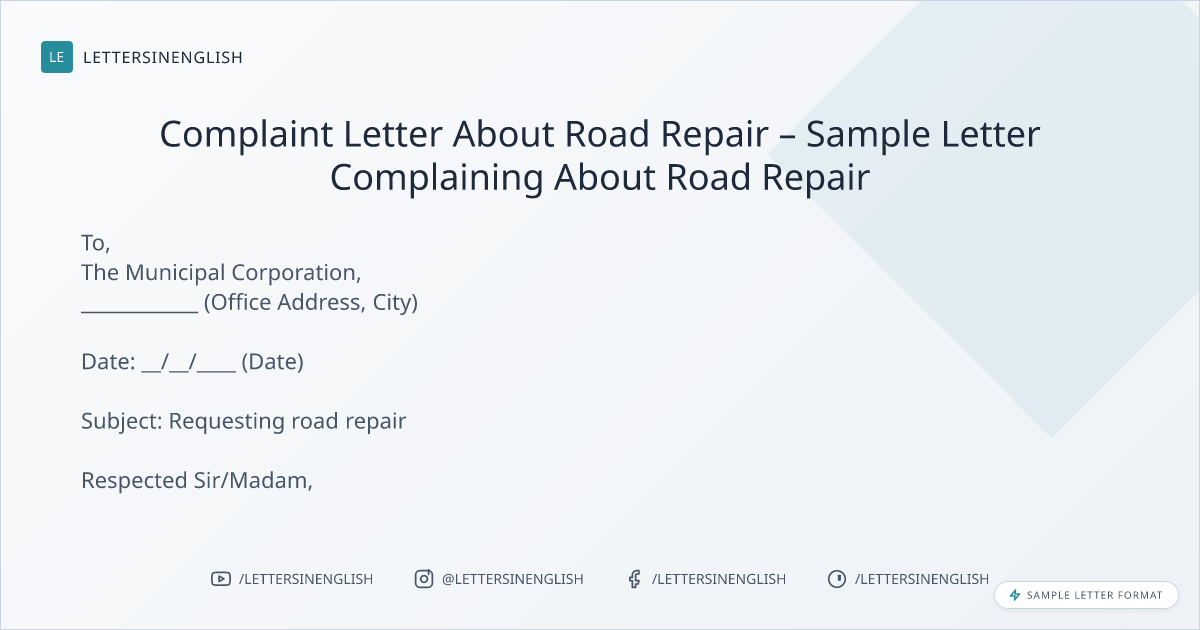 Sample Complaint Letter About Road Repair