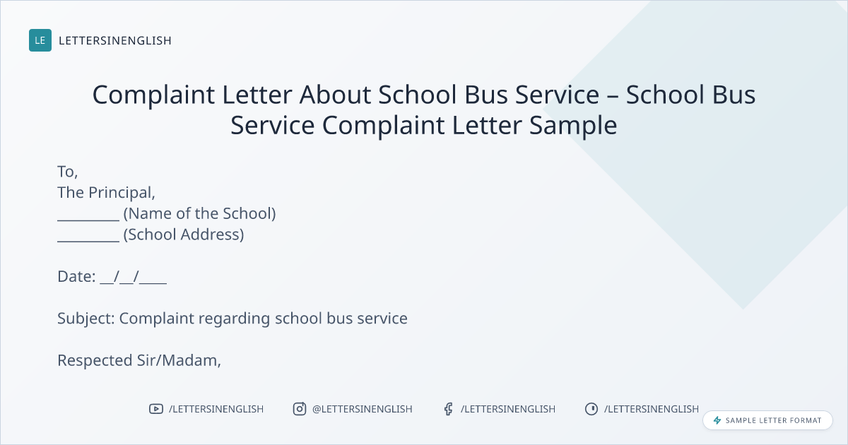 Complaint Letter About School Bus Service