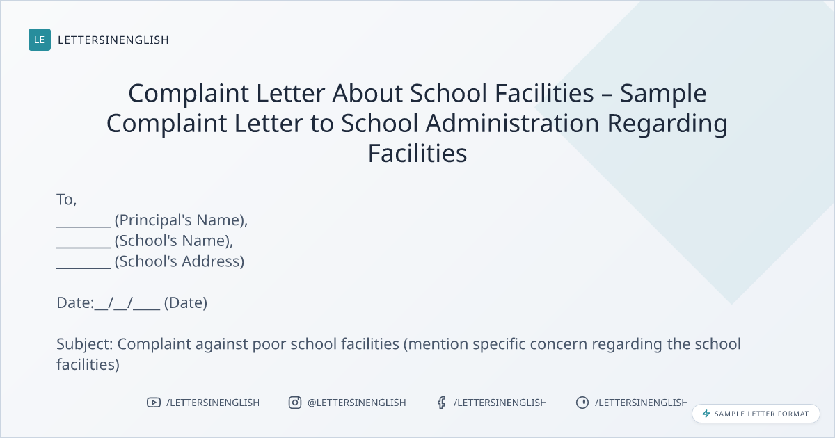 Complaint Letter About School Facilities – Sample Complaint Letter to School Administration Regarding Facilities