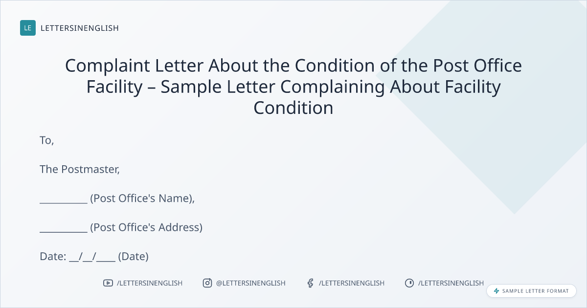 Complaint Letter About the Condition of the Post Office Facility – Sample Letter Complaining About Facility Condition