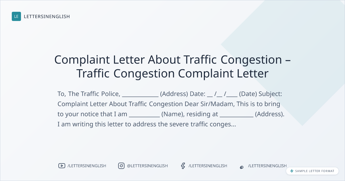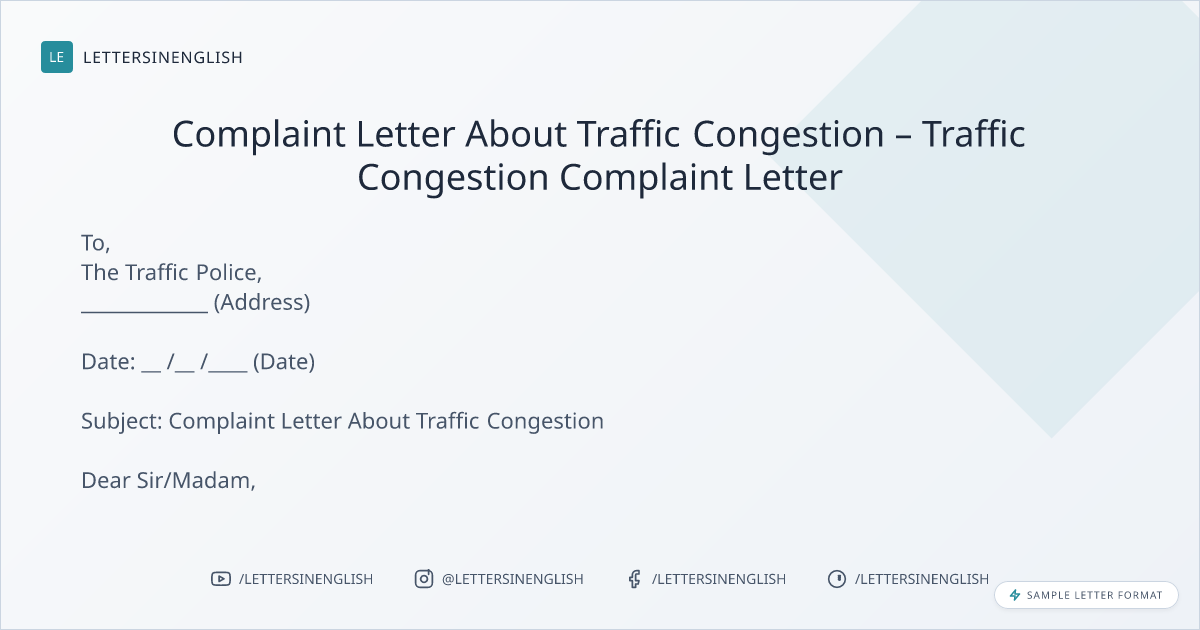 Complaint Letter About Traffic Congestion – Traffic Congestion Complaint Letter