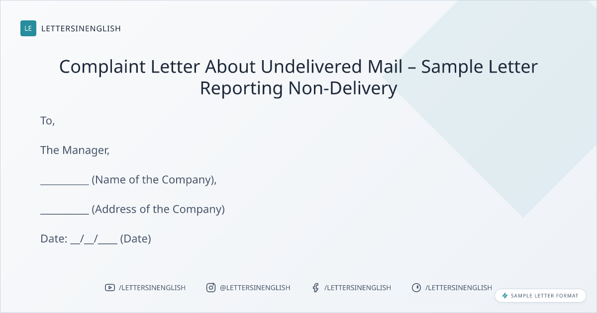 Complaint Letter About Undelivered Mail – Sample Letter Reporting Non-Delivery