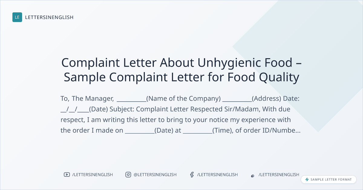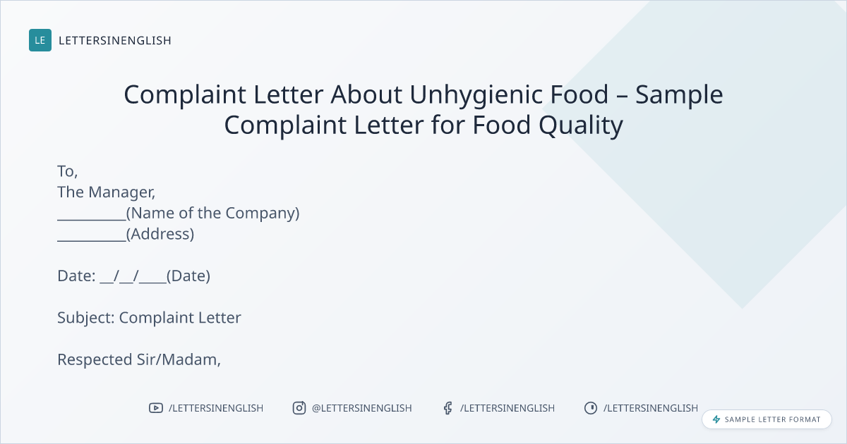 Complaint Letter About Unhygienic Food – Sample Complaint Letter for Food Quality
