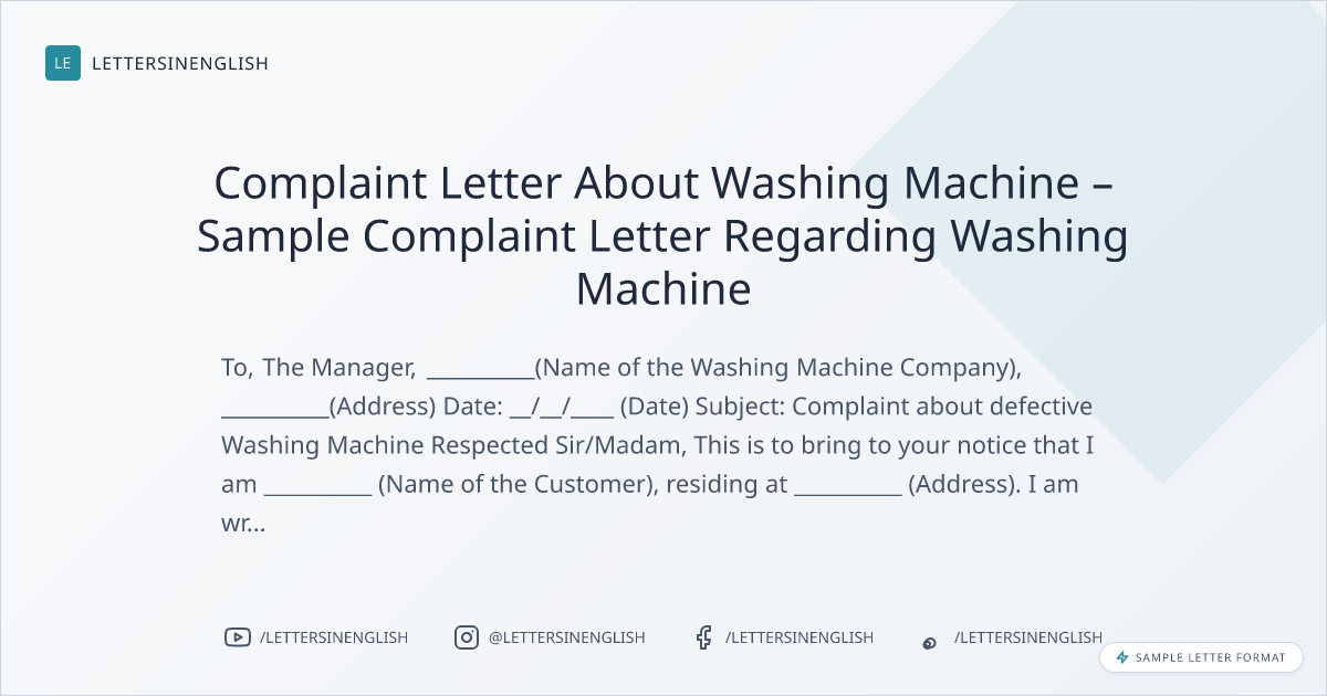 Complaint Letter About Washing Machine – Sample Complaint Letter Regarding Washing Machine