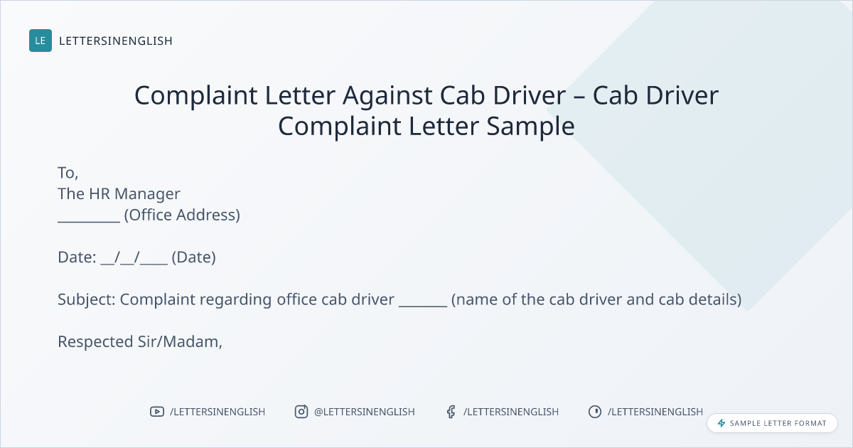 Complaint Letter Against Cab Driver – Cab Driver Complaint Letter Sample
