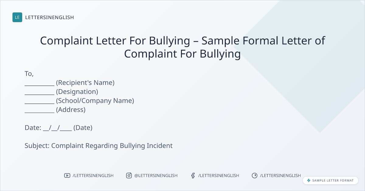 Complaint Letter For Bullying – Sample Formal Letter of Complaint For Bullying