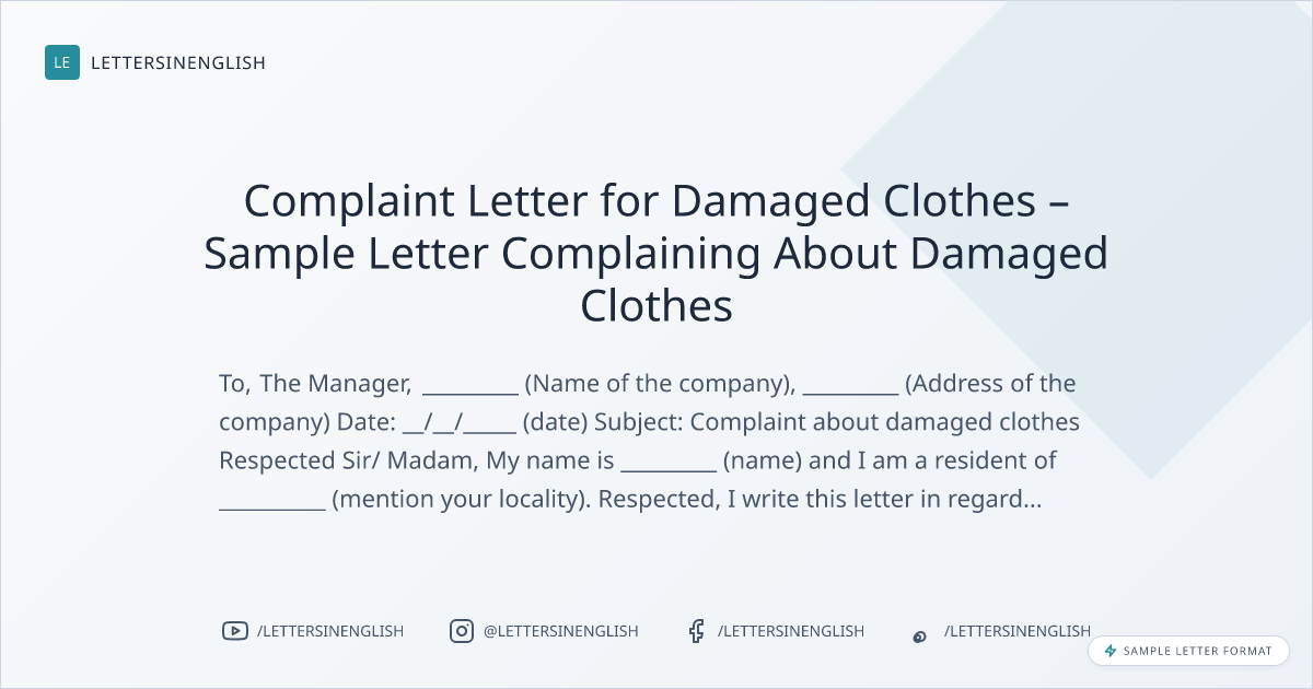 Complaint Letter for Damaged Clothes – Sample Letter Complaining About Damaged Clothes