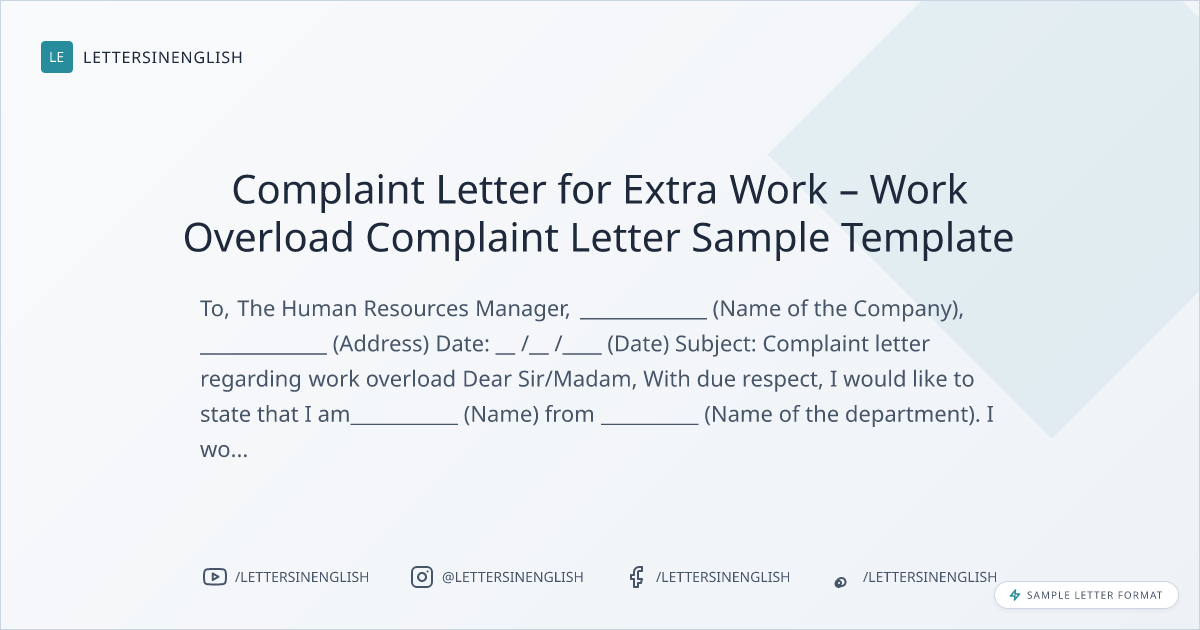 Complaint Letter for Extra Work – Work Overload Complaint Letter Sample Template