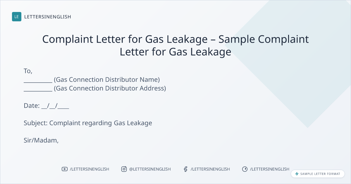 Complaint Letter for Gas Leakage – Sample Complaint Letter for Gas Leakage