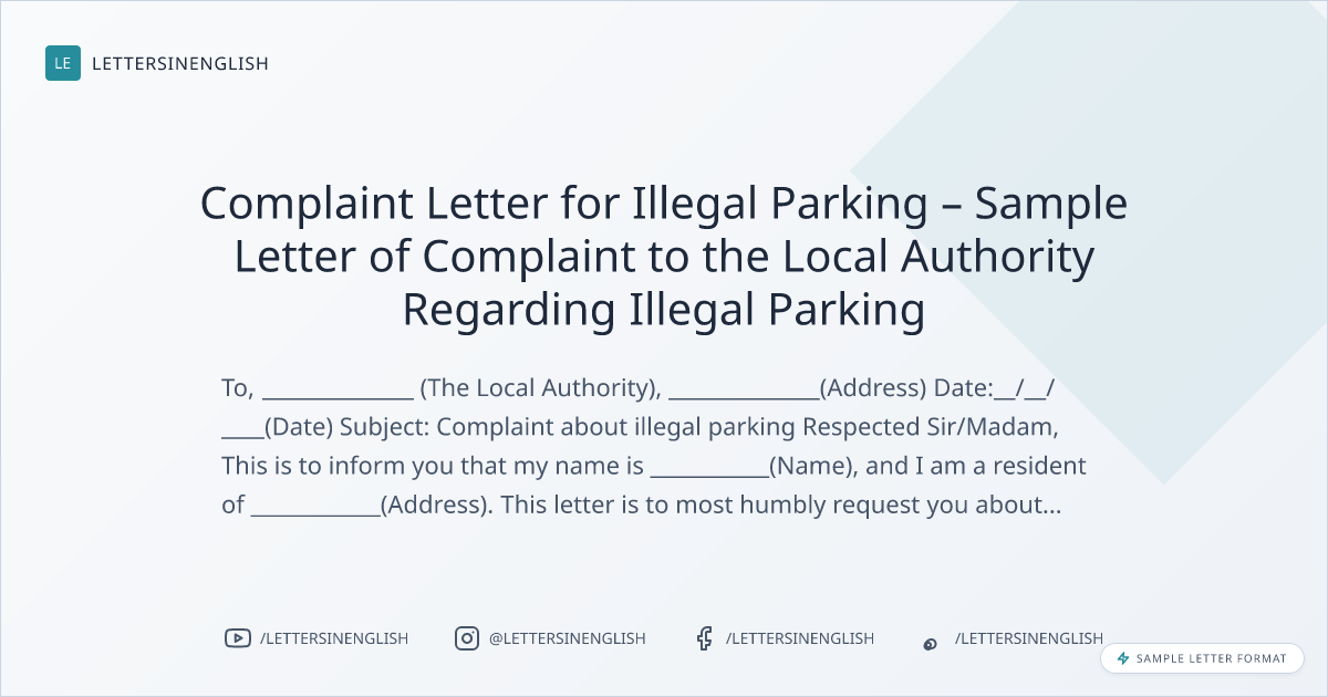 Sample Complaint Letter for Illegal Parking
