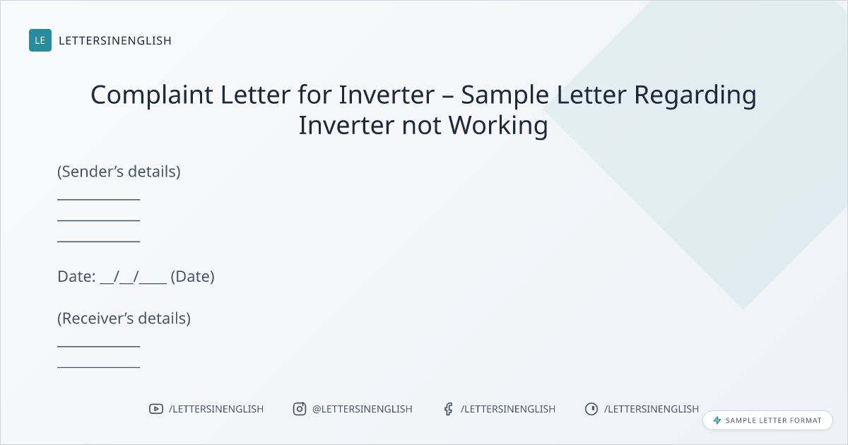 Complaint Letter for Inverter – Sample Letter Regarding Inverter not Working