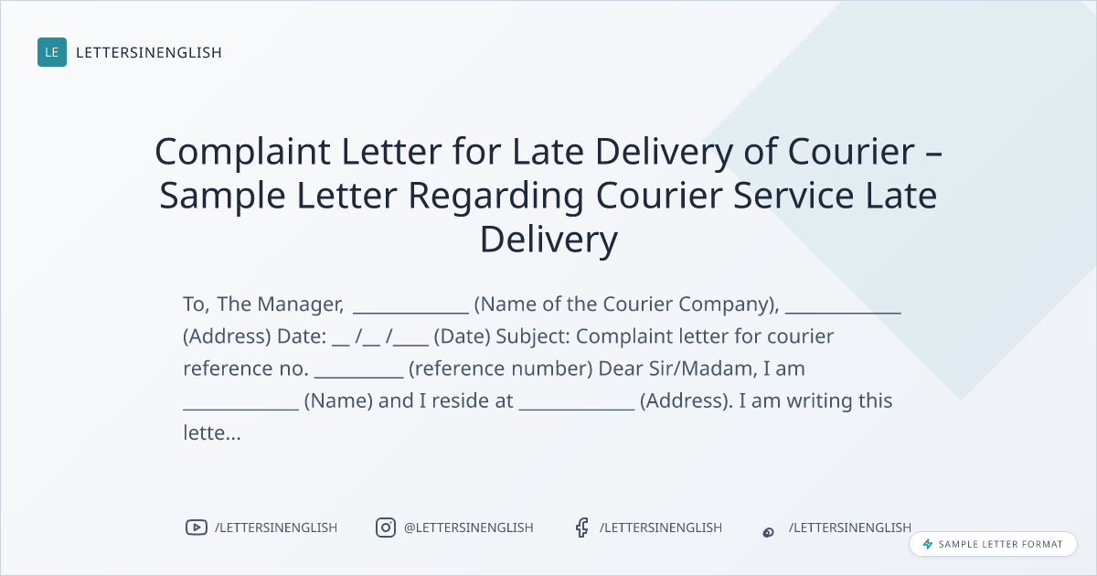 Complaint Letter for Late Delivery of Courier – Sample Letter Regarding Courier Service Late Delivery