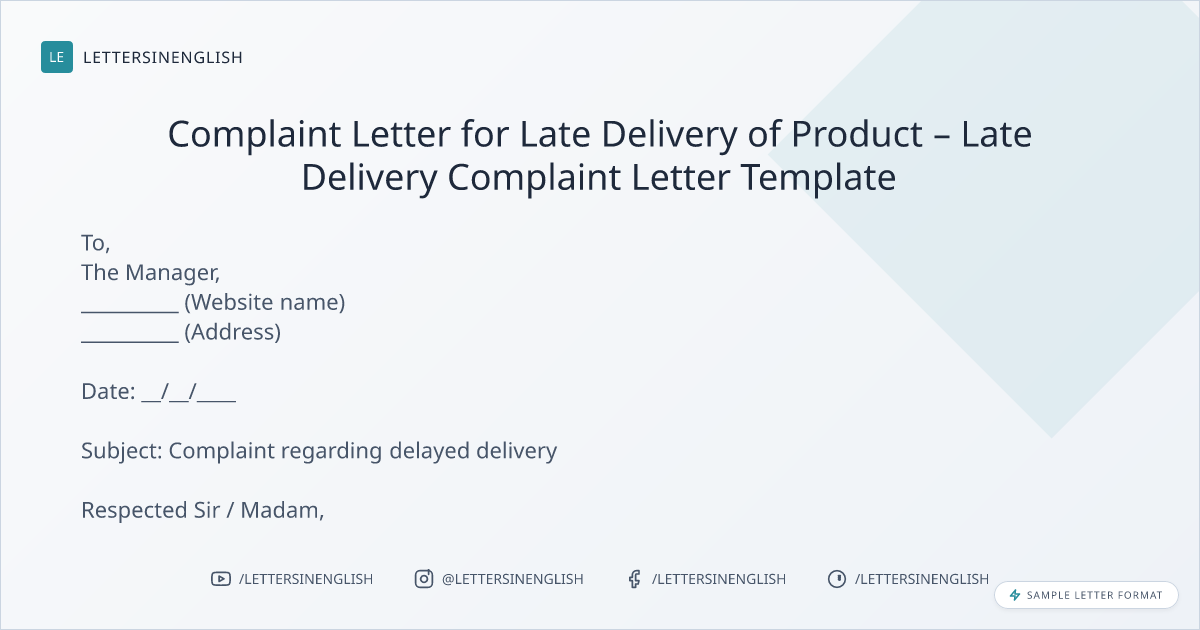 Complaint Letter for Late Delivery of Product – Late Delivery Complaint Letter Template