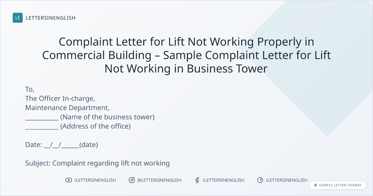 Complaint Letter for Lift Not Working Properly in Commercial Building – Sample Complaint Letter for Lift Not Working in Business Tower