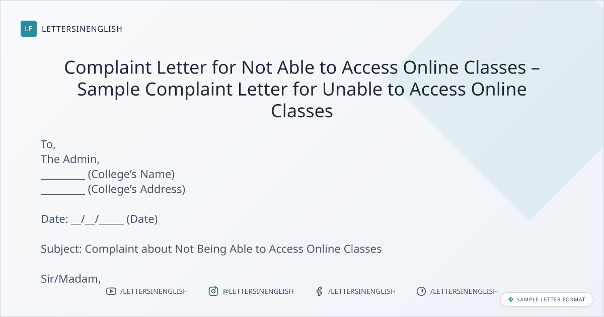 Complaint Letter for Not Able to Access Online Classes – Sample Complaint Letter for Unable to Access Online Classes