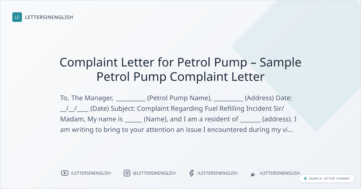 Complaint Letter for Petrol Pump – Sample Petrol Pump Complaint Letter