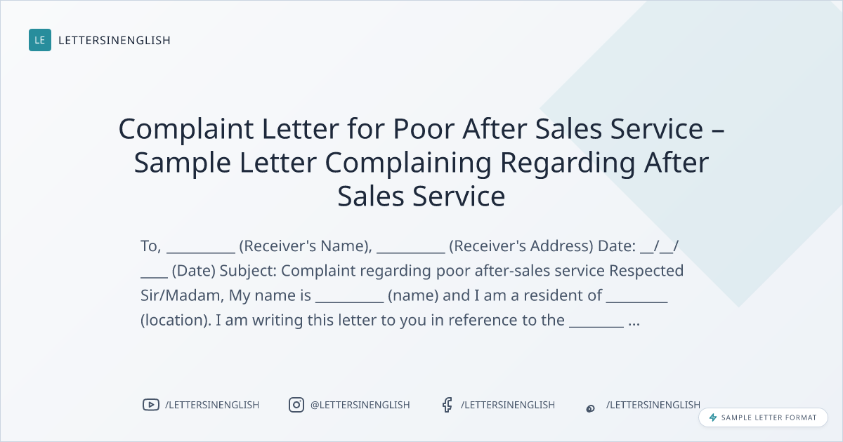 Sample Letter for Poor After Sales Service