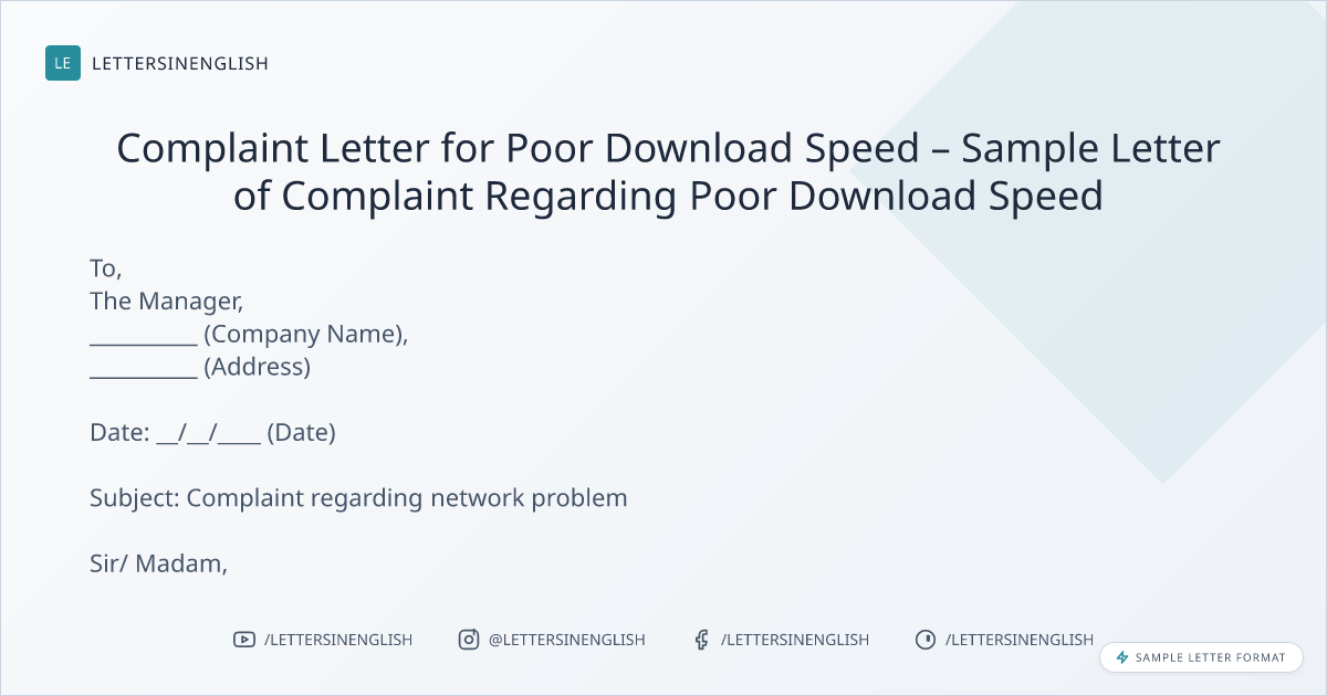 Complaint Letter for Poor Download Speed – Sample Letter of Complaint Regarding Poor Download Speed