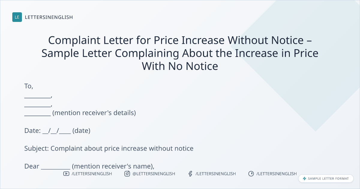 Sample Letter for Price Increase Without Notice