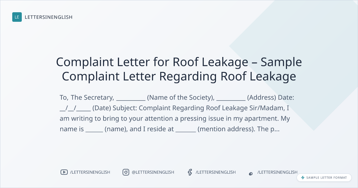 Complaint Letter for Roof Leakage – Sample Complaint Letter Regarding Roof Leakage