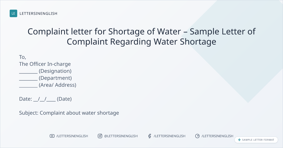 Complaint letter for Shortage of Water – Sample Letter of Complaint Regarding Water Shortage