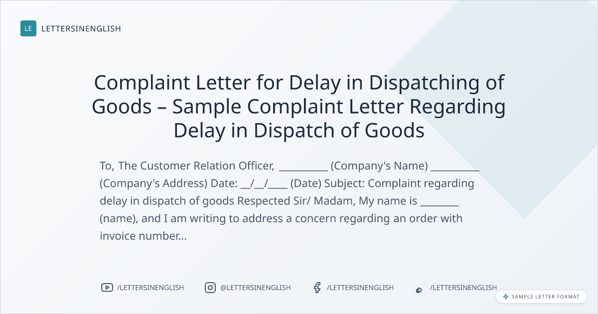 Sample Complaint Letter for Delay in Dispatch of Goods