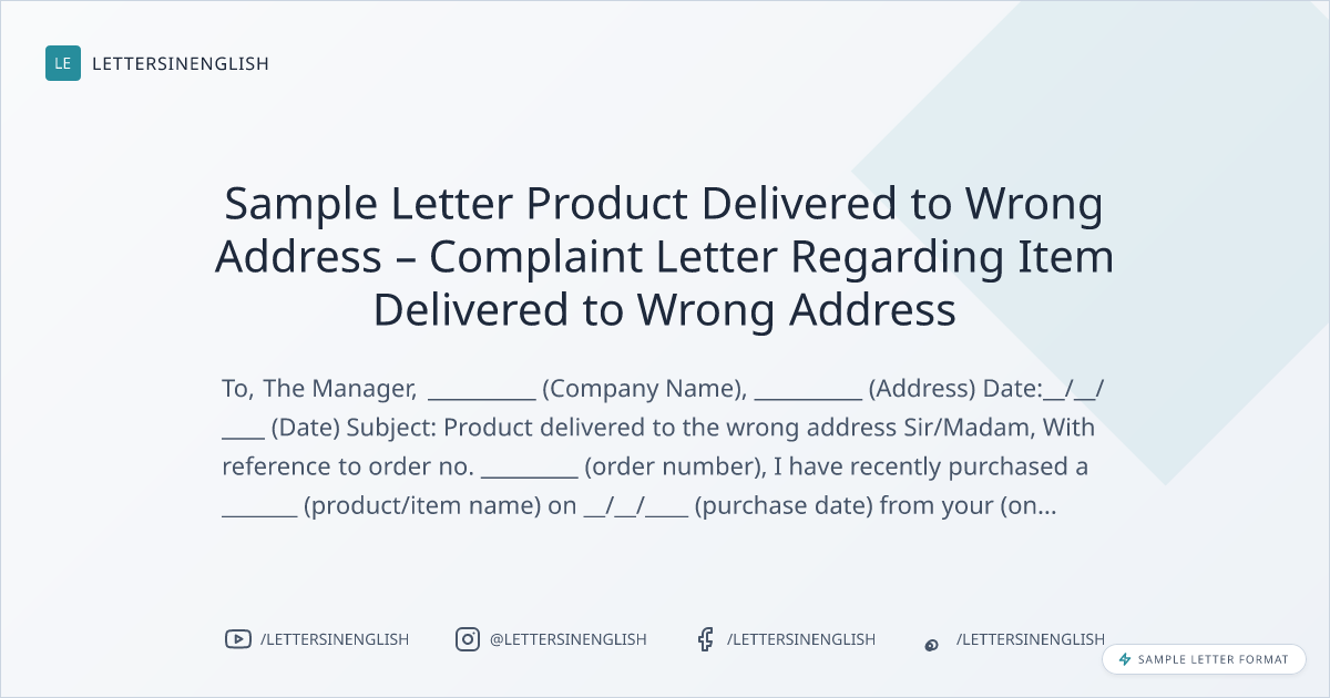 Sample Letter Product Delivered to Wrong Address – Complaint Letter Regarding Item Delivered to Wrong Address