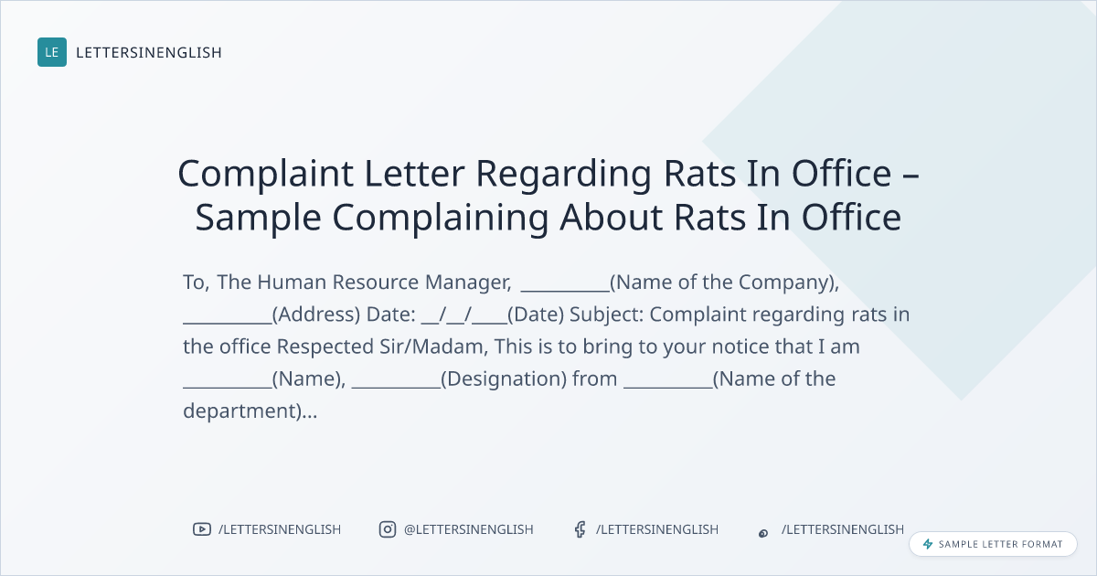 Complaint Letter About Rats In Office