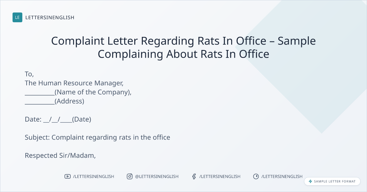 Complaint Letter Regarding Rats In Office – Sample Complaining About Rats In Office