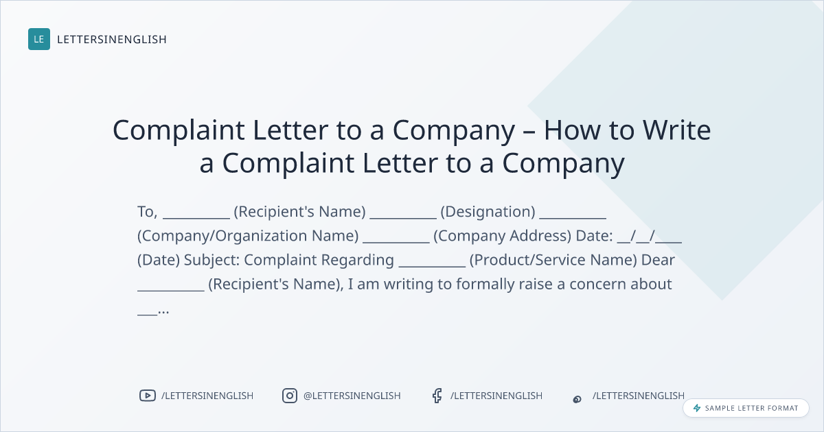 Complaint Letter to a Company – Sample Complaint Letter About Product or Service Issue